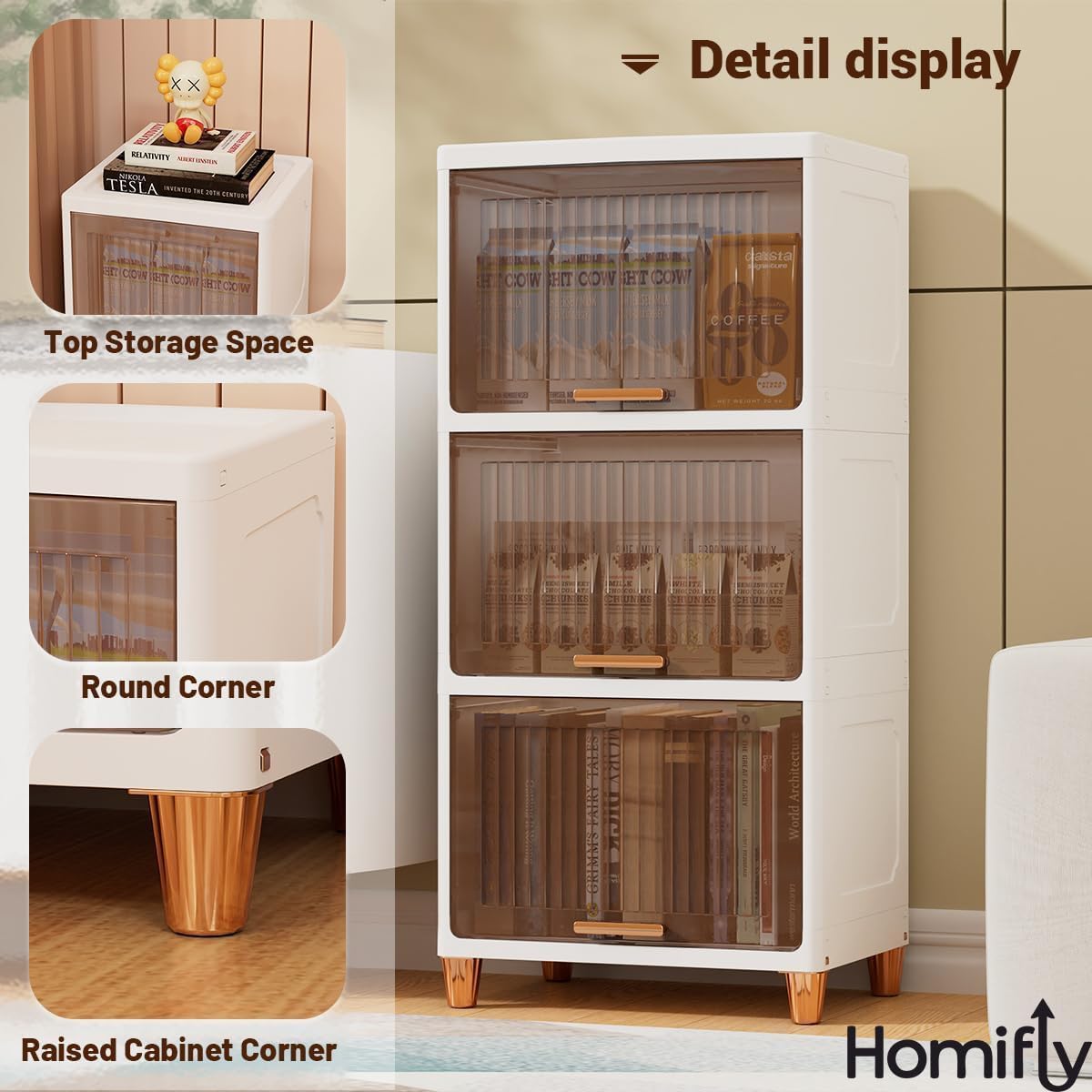 𝗧𝗿𝗮𝗻𝘀𝗹𝘂𝗰𝗲𝗻𝘁 𝗙𝗿𝗼𝗻𝘁 𝗗𝗼𝗼𝗿𝘀: Each compartment features a semi-transparent front door, allowing you to view the contents at a glance without needing to open it. This saves time and adds a touch of elegance to your storage, perfect for displaying books, kitchenware, cleaning supplies, or other essentials.