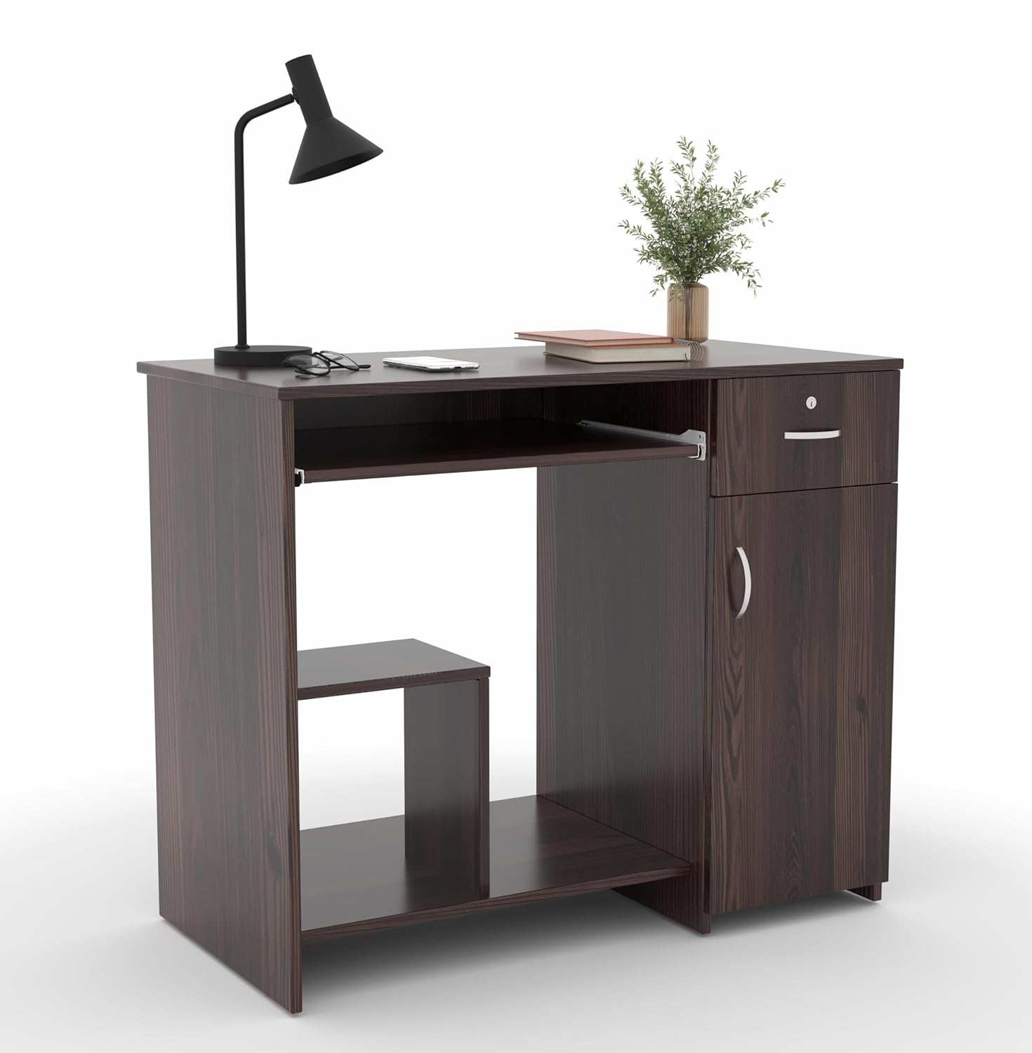 45x90x76CM Engineered Wood Study & Office Table with Drawer, Cabinet Storage & Keyboard Tray | Sturdy, Foldable DIY Multipurpose Table- Wenge