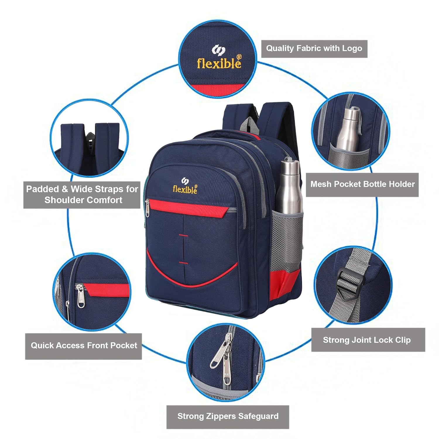 This Backpack is designed to meet the daily needs of students and working professionals. Crafted from durable premium fabric, this backpack offers long-lasting performance while maintaining a stylish appearance. It features three spacious zippered compartments that provide ample storage for books, files, lunch box, and gadgets, keeping everything well organized. The padded shoulder straps and cushioned back panel ensure maximum comfort, even when the bag is fully loaded. A side mesh pocket allows easy access to your water bottle, making it ideal for school, college, office, tuition classes, or daily commuting. With smooth zippers and strong stitching, this backpack is built for everyday reliability while offering a clean, modern look. Perfect for school students, college students, office use, and casual travel.