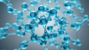 Close-up view of amino acid molecular structure with a supplement bottle in the background representing muscle recovery and health science.