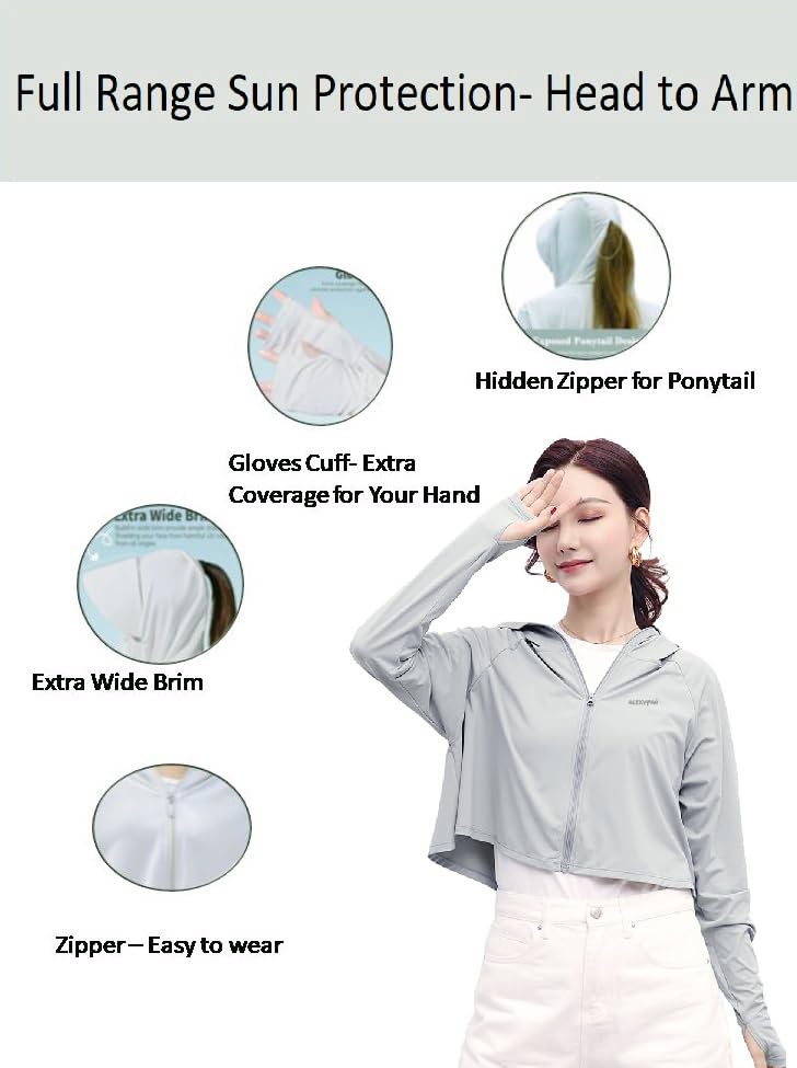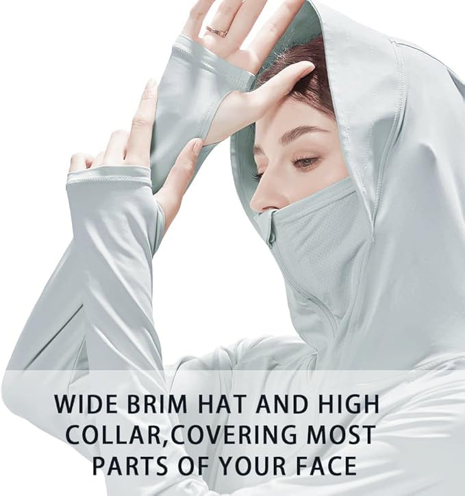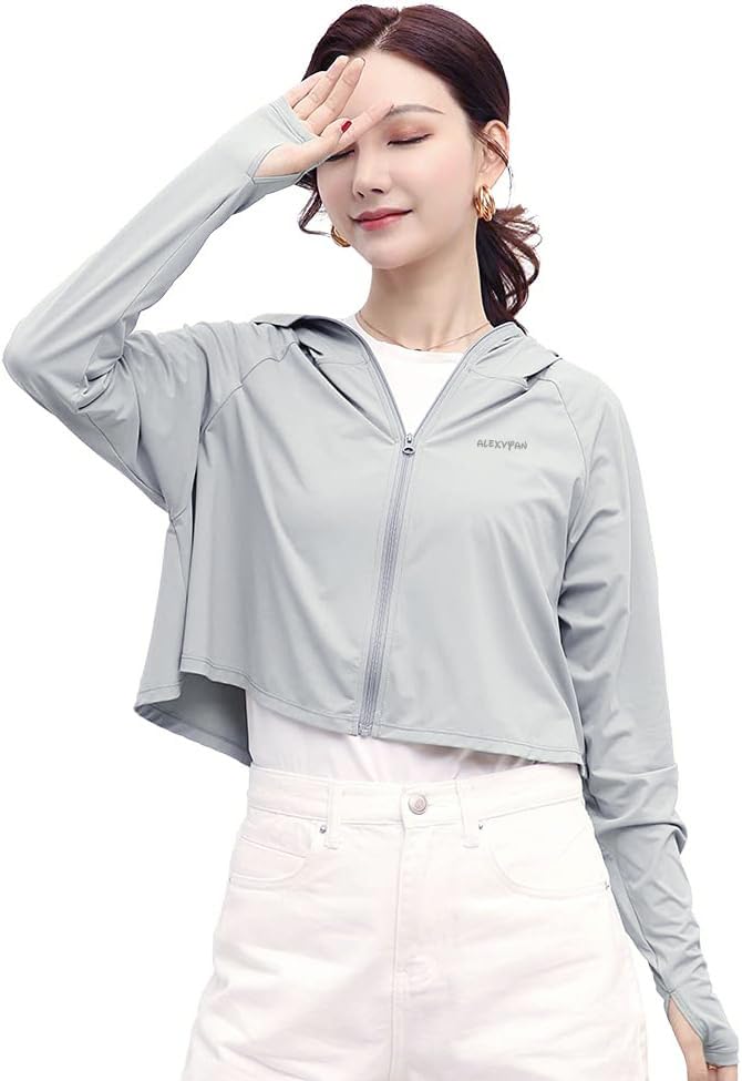 Alexvyan Size-L Dark Grey Women’s UV Protection Jacket, Lightweight Summer Sun Screen Hoodie with Visor, UPF 50+ Protection for Outdoors, Shirt Full Zipper Sun Protection Jacket- FIT 50-65 KG