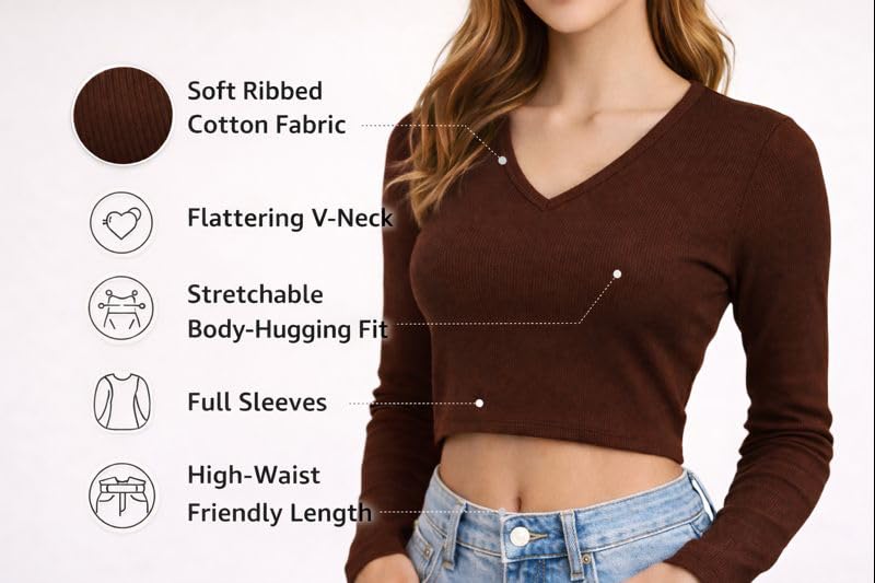 Designed to flatter and made to feel good, this ribbed long-sleeve V-neck crop top blends everyday comfort with effortless style. Crafted from soft, breathable cotton-rich fabric, it offers a snug yet flexible fit that moves with you while maintaining its shape. The modern cropped silhouette pairs perfectly with high-waist jeans, skirts, or trousers—making it an easy choice for casual outings, date nights, and special occasions. Available in elegant shades of black, maroon, coffee brown, and lavender, this versatile top adds a romantic touch to any wardrobe. Thoughtfully styled and gift-worthy, it’s a perfect Valentine surprise for someone who loves comfort, confidence, and timeless fashion.