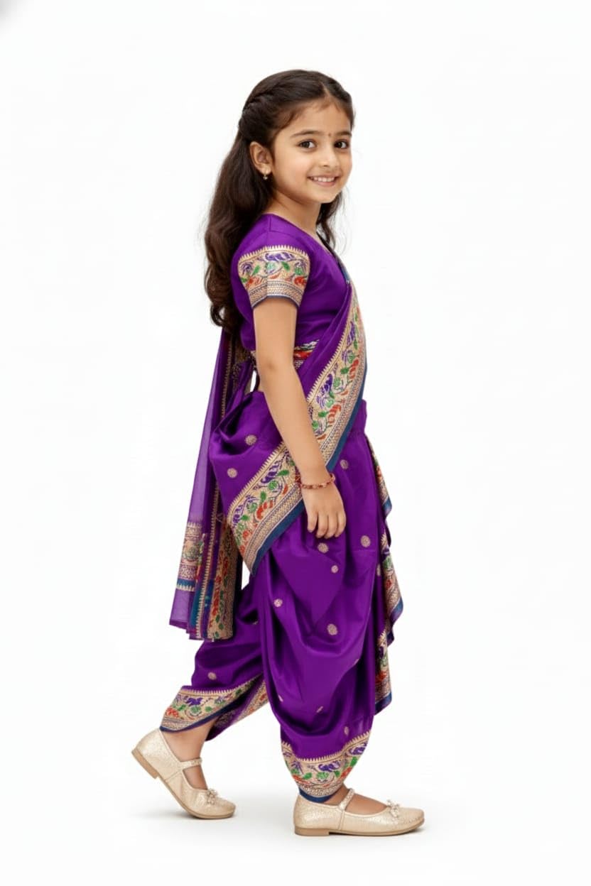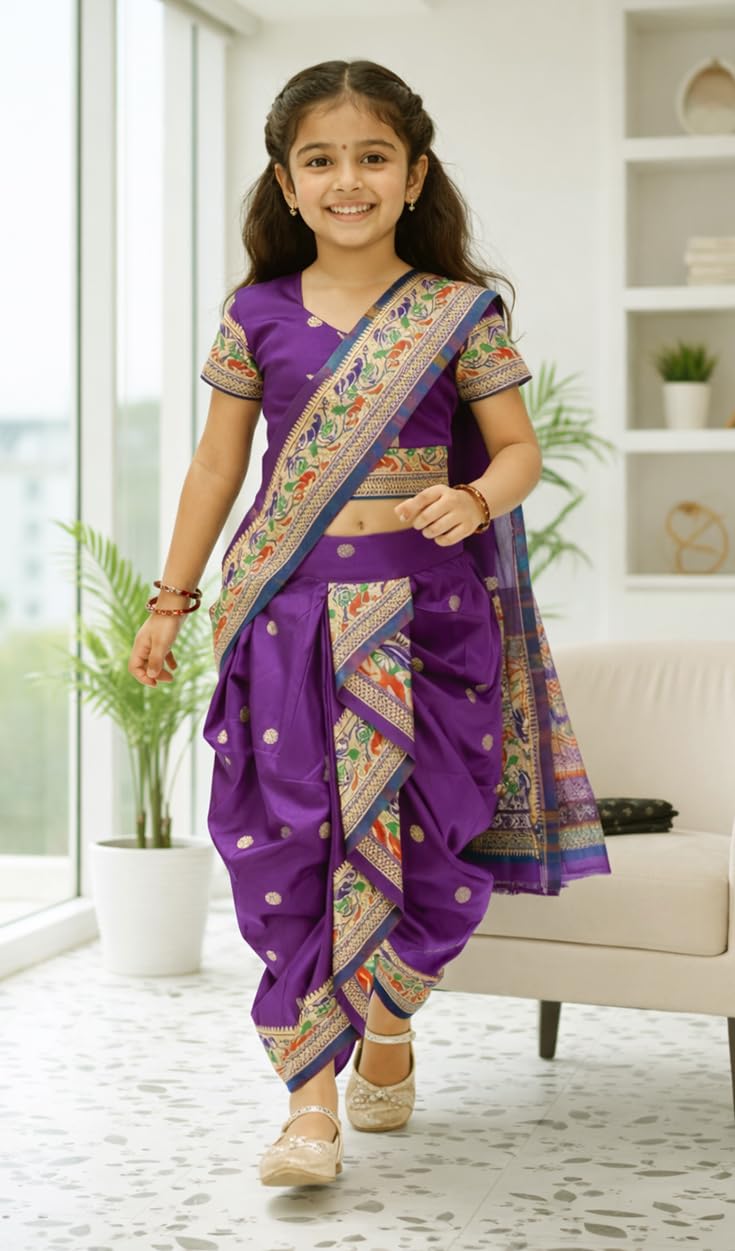 Cron Reddy to wear Traditional Turquoise Kids Nauvari Saree, Ethnic Indian Marathi Wear with Decorative Border