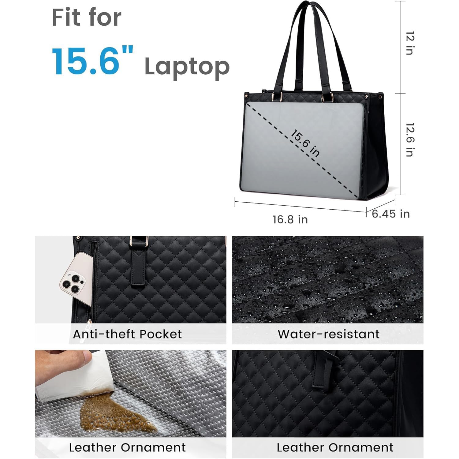 Elegant Work Bag with Lunch Compartment – Laptop Tote Bag with Lunch Box Section, Office Bag with Insulated Lunch Storage – Stylish Quilted Shoulder Bag for Women.