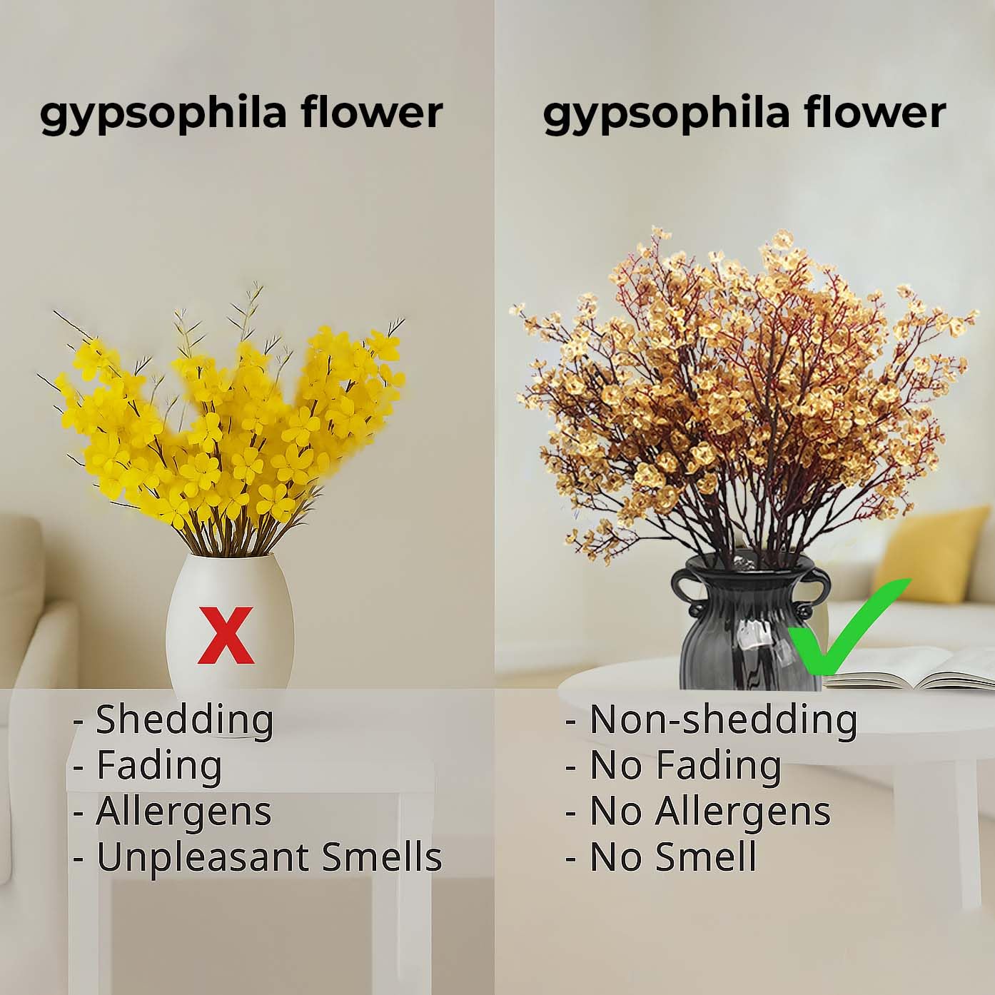 ๐๐๐ญ๐๐ซ๐ข๐๐ฅ: The artificial or fake plant is made of Quality plastic. This Gypsophila flower is long-lasting, fade-resistant, and requires minimal maintenance, providing you with enduring beauty. Our artificial flowers for home decor are meticulously crafted to look just like real flowers, they add a touch of nature to your living space.