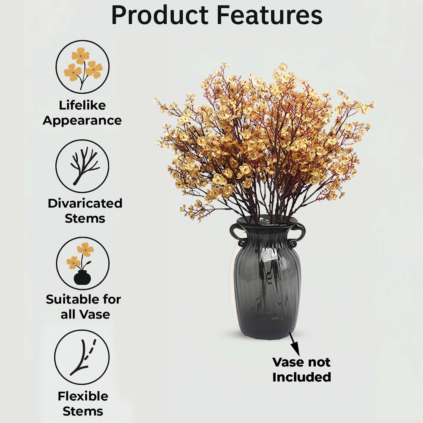 FAME ADDA 3 Piece Artificial Gypsophila Flower Sticks Bunch for Vase Home/Office/Bedroom/Table Centerpiece/Wedding Party Decoration/Flowers for Vases/Gift Items (Golden, Vase not Included)
