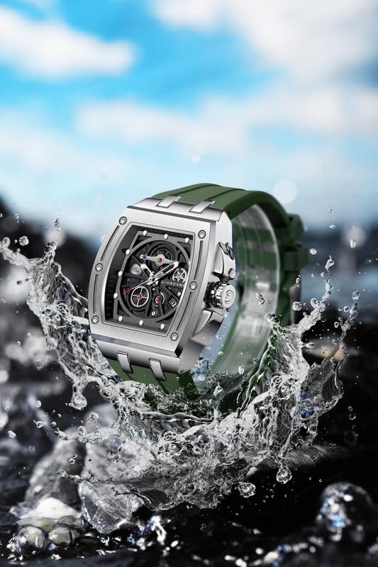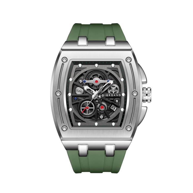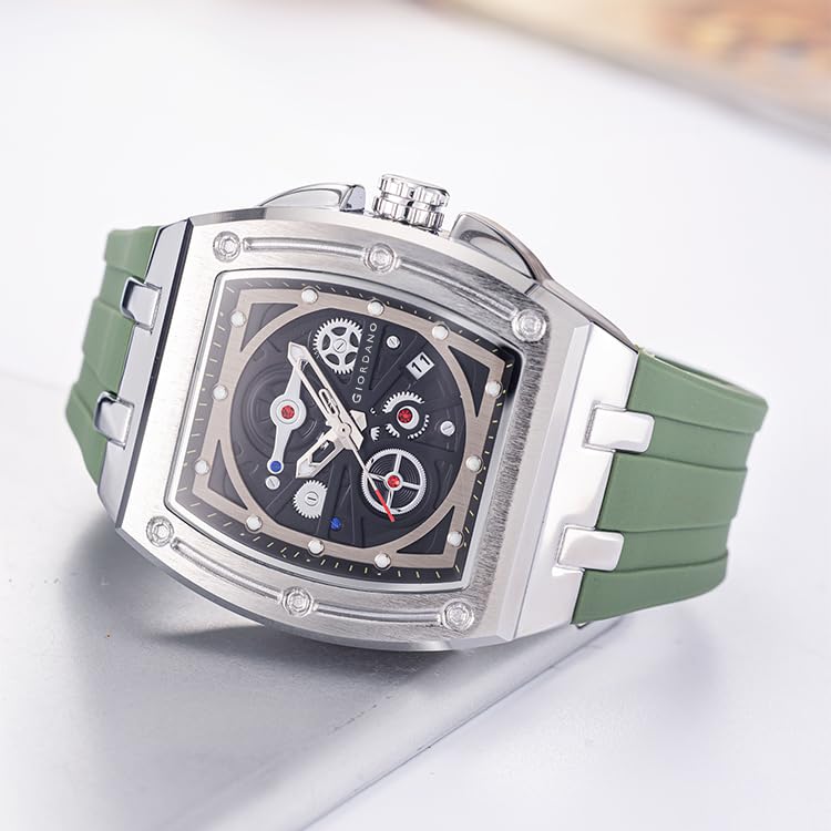 Giordano Sqaure Analog Casual Sporty Watch for Men – Mechanical-Inspired Dial, Date Display, Quartz Movement and Comfortable Silicone Strap