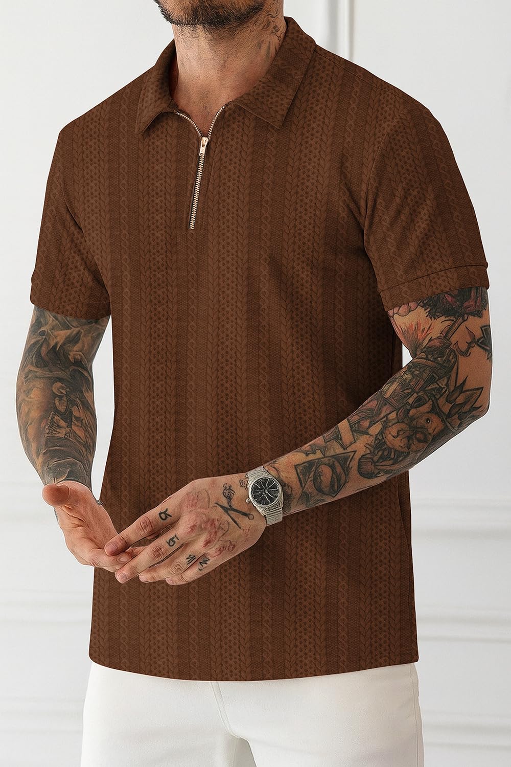 KAJARU Men’s Polyster Lycra Regular Fit T-Shirt with Half Sleeve Chain Polo Collar V-Neck Standard Length and Classic Style