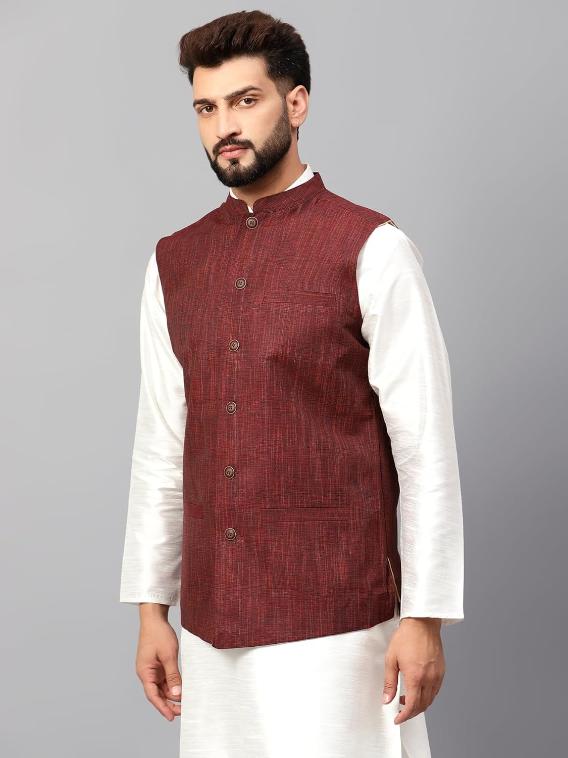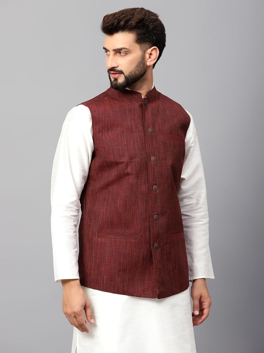 LATEST CHIKAN Men’s Traditional Cotton Solid Nehru Jacket/Waistcoat