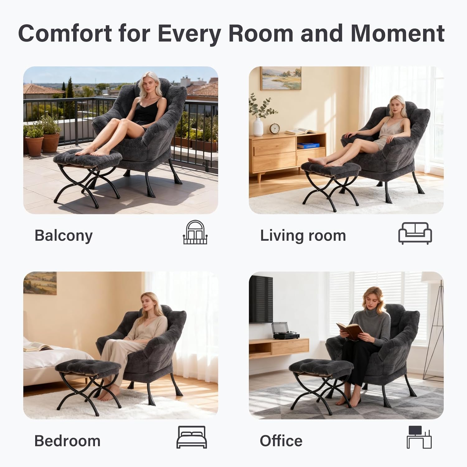 STURDY & STABLE ACCENT LAZY CHAIR: The metal frame is knocked without scratches. And it also has a middle tube to well support the whole chair. In addition, this sofa chair can hold 250 pounds, so you can easily rest on it. And we also have non-slip foot cover design, not only enhance the overall stability, but also protect your floor from scratches