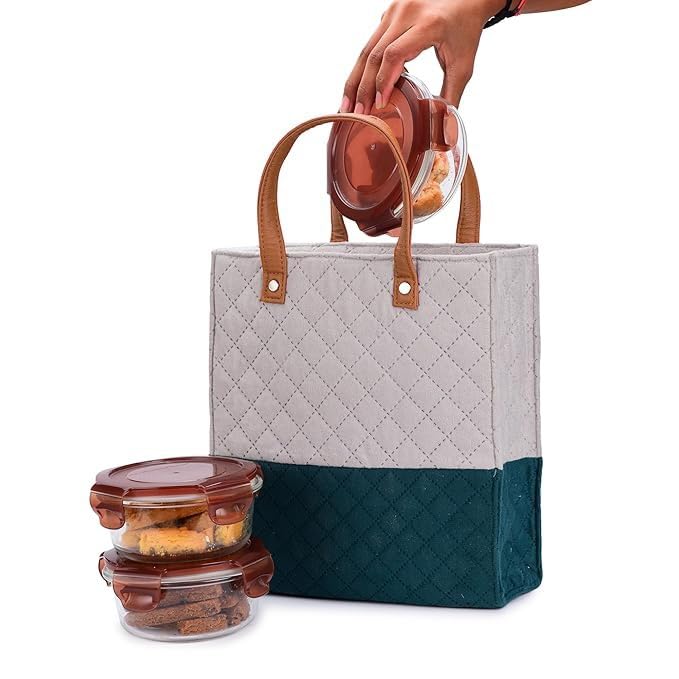 Smooth Quilted Exterior: The exterior of the lunch bag is quilted, providing a decorative element while also adding texture and visual interest. The smooth quilted exterior enhances the overall aesthetics of the bag.