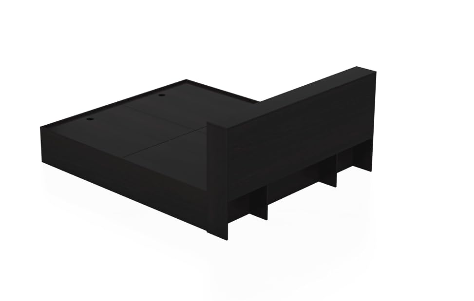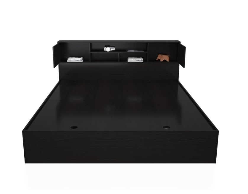Modern Queen Platform Bed Frame with Storage Headboard and Shelves, Black. (King)
