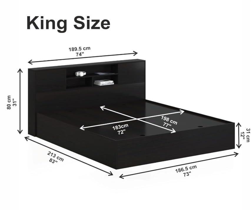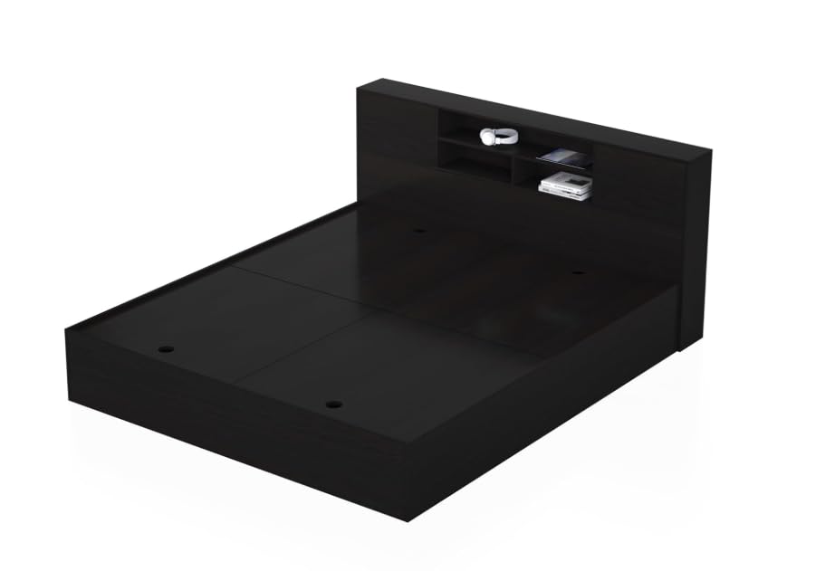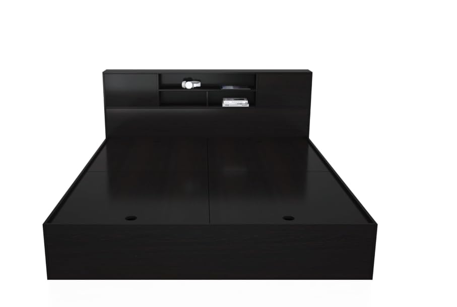 Transform your bedroom with this sophisticated Queen Platform Bed Frame from Furnilife. This modern black bed features a thoughtfully designed storage headboard with convenient shelves for your books, alarm clock, and bedside essentials. The spacious under-bed storage compartments offer ample space for linens, clothing, and other items, helping you maintain a clutter-free bedroom. The bed’s generous dimensions (198 cm length x 156 cm width) provide comfortable sleeping space, while its sturdy construction ensures stability and durability. The sleek headboard, measuring 80 cm in height, adds a contemporary touch to your bedroom décor. The platform design eliminates the need for a box spring, supporting your mattress directly for optimal comfort. Perfect for modern homes where style meets functionality, this bed frame combines elegant aesthetics with practical storage solutions. The black finish complements any bedroom colour scheme, making it a versatile choice for your home.