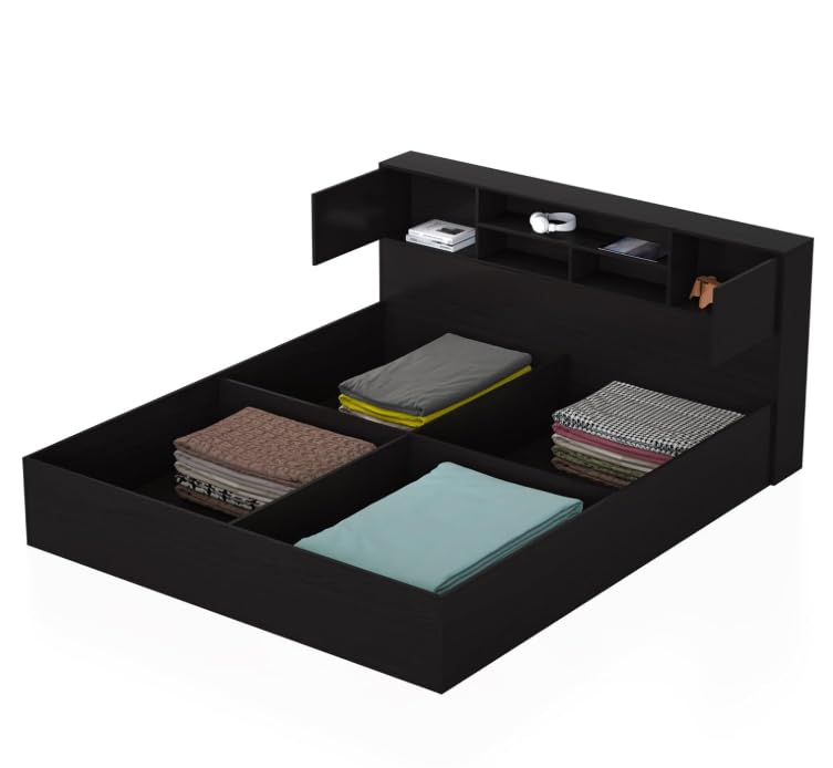 STORAGE SOLUTION: Features built-in compartments in the base and multiple shelves in the headboard for organised storage of bedding and personal items