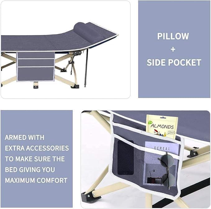 【STURDY & HEAVY DUTY】: Finished With Updated And Thicker Elliptical Shape Tubes On The Cot Legs, Adding The Camp Cot To Best Stability And Carrying Capacity. It Easily Supports Up To 500 Lbs At Most. Perfect For Tall Adults, Heavy People, Or Family.