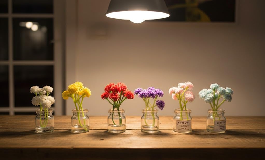 🌸 ELEGANT MINI ARTIFICIAL FLOWER VASE FOR HOME DECOR : Beautiful mini artificial flower vase designed for home decoration, office desk decor, living room decor, bedroom decor, and table decoration. Adds instant freshness and elegance to any space. Set of 6 colorful artificial flowers in transparent glass vases that instantly brighten any space.