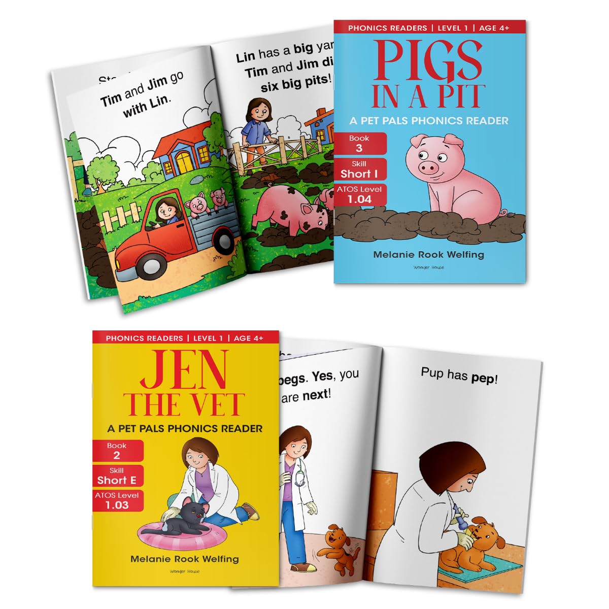 Core TopicsPhonics-based learning with short vowel soundsCVC (consonant-vowel-consonant) word practiceHigh-frequency sight word reinforcementShort vowel review and mixed vowel fluencyHighlights8 engaging, decodable stories with vibrant illustrationsEach book focuses on one short vowel or a cumulative reviewSimple, repetitive sentences for easy decodingEnd-of-book activities for reinforcement and fluency practicePerfect for guided reading, homeschooling or independent learningBest ForChildren ages 3–6 beginning their reading journeyPre-K, Kindergarten and early Grade 1 learnersParents, teachers and tutors looking for structured phonics supportESL/ELL learners developing foundational English literacyWhy Kids Will Love ItFun animal characters and relatable storylinesColorful illustrations that make learning enjoyableEasy-to-read words that help build confidenceWhy Parents Will Love ItProven phonics-based approach to readingStep-by-step progression from single vowel sounds to reviewsEncourages independent reading and early fluencyAge & UsageAges 3+ | Pre-K to Grade 1Great for classroom libraries, literacy centers or home learningBridges the gap between letter recognition and independent readingMaterials & QualityDurable paperback design for repeated useLarge and child-friendly fonts with clear spacingHigh-quality illustrations that support comprehensionTitles in the Series (Pack of 8)SAM THE CAT – Short “a”JEN THE VET – Short “e”PIG IN A PIT – Short “i”A JOB FOR DOG – Short “o”DUCK IN MUD – Short “u”A BIG MESS – Short Vowel ReviewA PET PALS PICNIC – Short Vowel ReviewA PARTY FOR PAT – Short Vowel Review