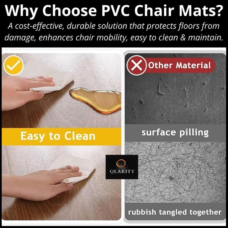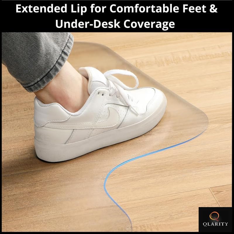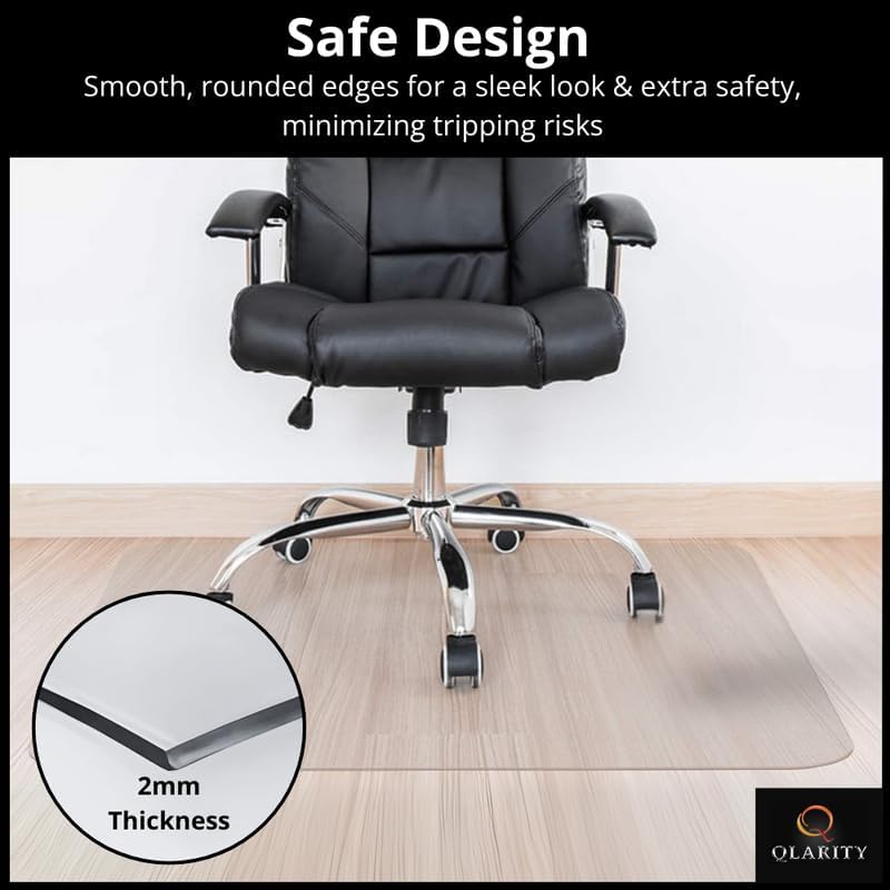 Qlarity Covers 2mm Thick 48X60 Inch PVC Chair Mat with Extended Lip Under-Desk Coverage for Hardwood/Tile/Laminate Floors | Prevents Scratches, Ensures Smooth Rolling & Non-Slip (Translucent)