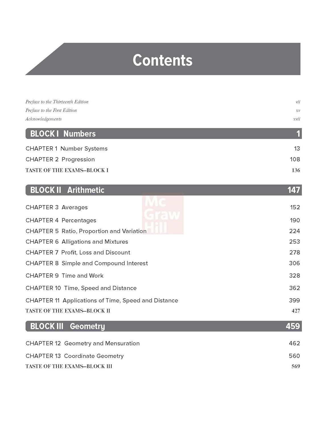 Chapter 3: AveragesChapter 4: Ratio, Proportion and VariationChapter 5: PercentagesChapter 6: Alligations and MixturesChapter 7: Profit, Loss and DiscountChapter 8: Simple and Compound InterestChapter 9: Time and WorkChapter 10: Time, Speed and DistanceChapter 11: Applications of Time, Speed and DistanceTaste of the Exams – Block II