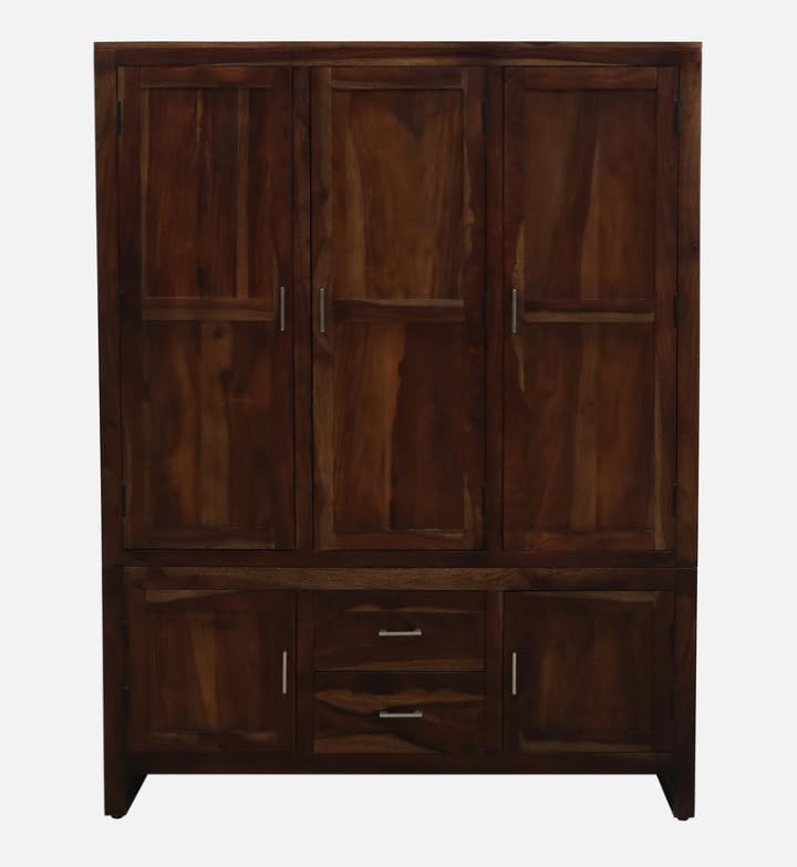Solid SHEESHAM Wood Classic Style 3 Door Almirah with Multiple Selves | 2 Door Storage | 2 Drawer | for Bedroom, Living Room, Home, Office (Provincial Teak)
