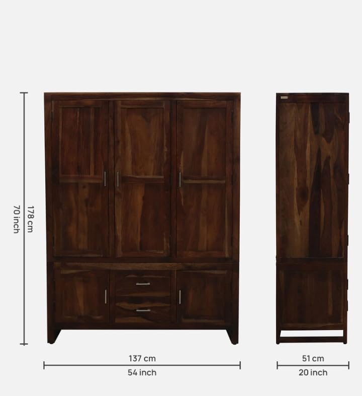 Sturdy Construction: Crafted from solid Sheesham wood, this wardrobe offers exceptional durability and longevity.