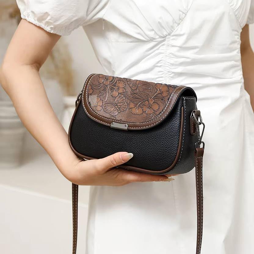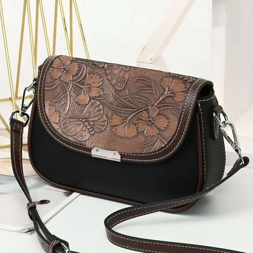 Vintage Floral Embossed Crossbody Bag for Women – PU Leather Shoulder Sling Bag, Stylish Small Handbag for Daily Use & Travel