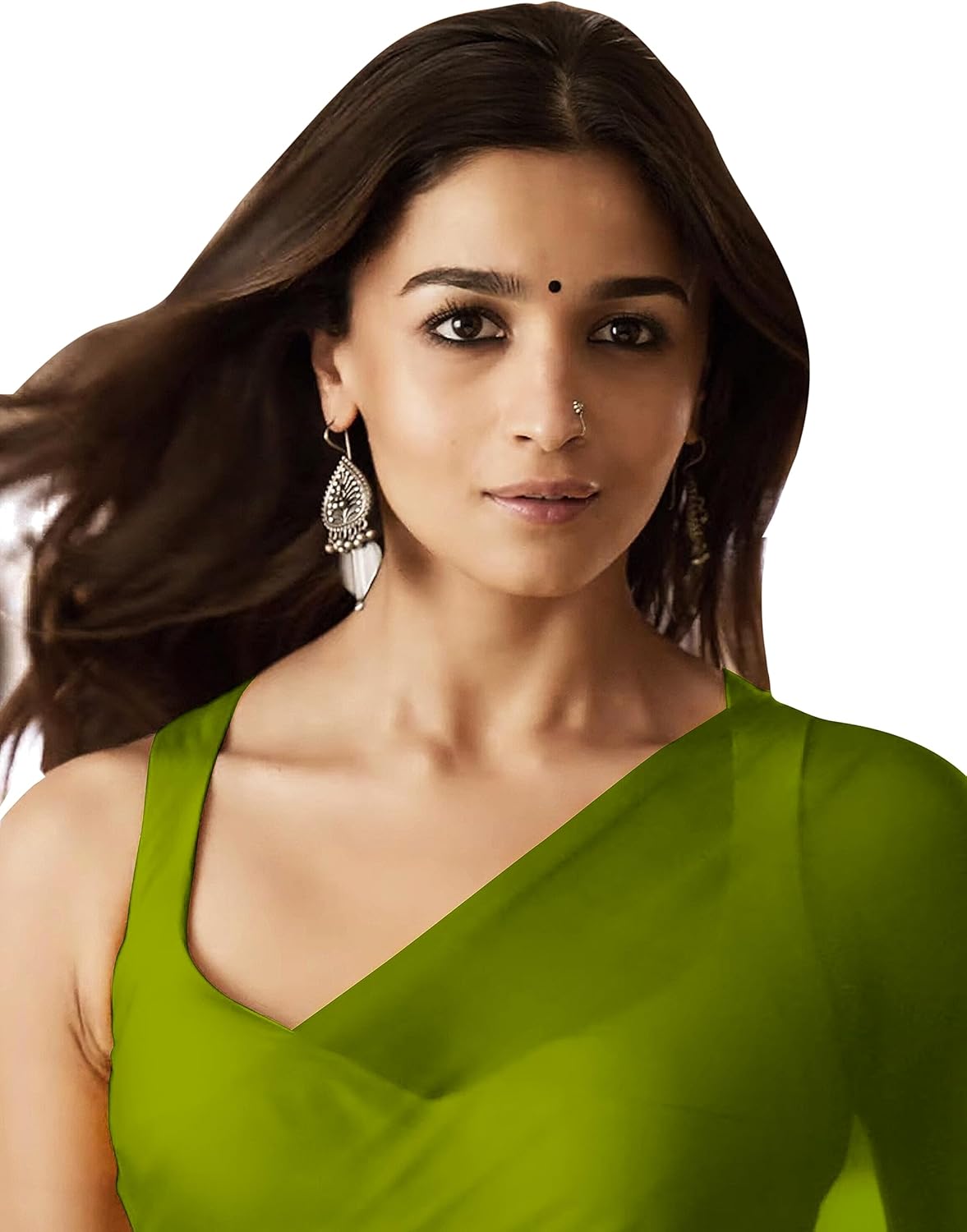 Women’s Plain Pure Georgette Saree With Unstitched Blouse Piece (Rocky Aur Rani Ki Prem Kahani Alia Bhatt Saree)