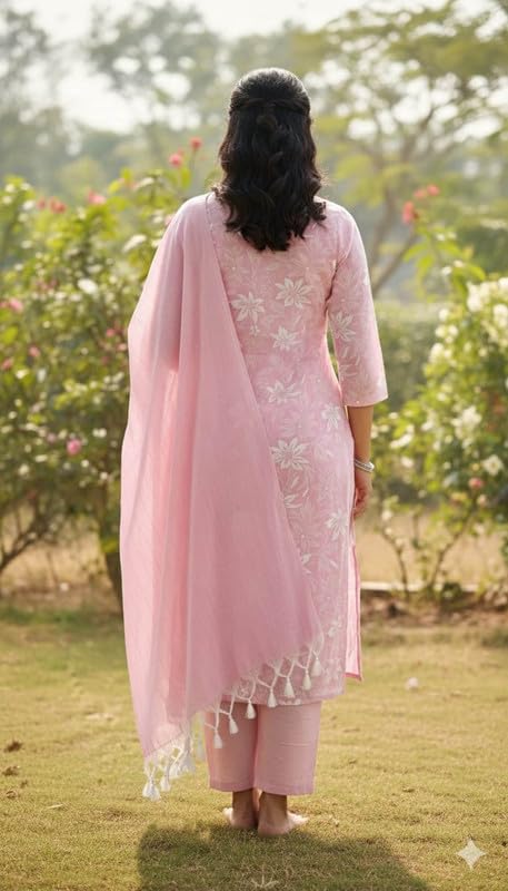 A.U COLLECTION Women’s South Cotton Floral Printed Kurta with Pant & Dupatta Pink is a graceful ethnic ensemble designed for elegance and all-day comfort. Crafted from breathable and soft South cotton fabric, the kurta features intricate embroidery that adds a touch of traditional charm.